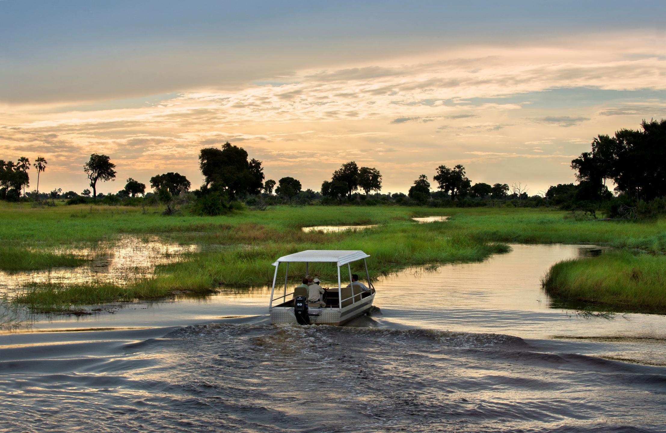 Days are entirely your own — game drives, mokoro and boat safaris, bush walks, wild picnics, starlit dinners, or simply time spent in the spa, pool, or library surrounded by the world’s largest privately owned collection of contemporary African art. For an unforgettable night, the sculptural Baobab Treehouse rises 10 metres above the floodplain — open to the stars, and to the soul of the Delta.