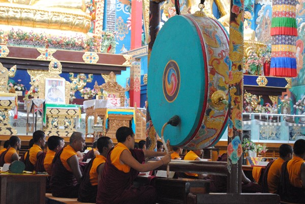 The following morning we drove to Bylakuppe, a town of over 20,000 people and home to one of the largest Tibetan settlements in India. It is famed for the Namdroling Nyingmapa Monastery, which is the largest teaching centre of Nyingmapa (a lineage of Tibetan Buddhism) in the world, home to over 5,000 monks and nuns. You truly feel like you have hopped over the border to Tibet! The main temple was awe-inspiring and we managed to stay for afternoon prayers, which was unlike anything I have experienced before with communal chanting of hundreds of monks with drums and bells.