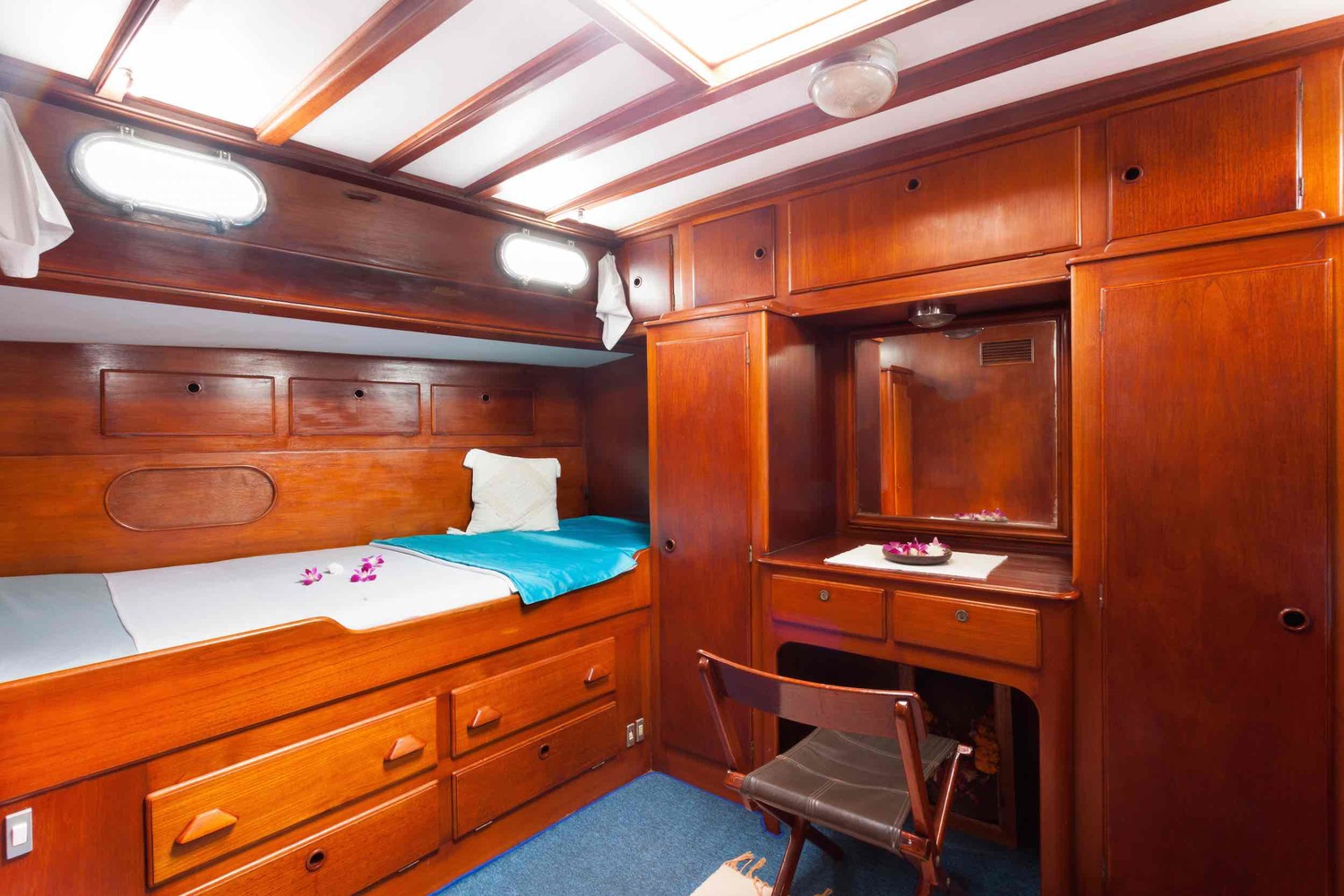 Scame is a timeless 72 foot sailing yacht with a relaxed and friendly atmosphere. With three double cabins, she is unexpectedly spacious and ideal for sailing families or groups of six around the Mergui Archipelago. She has a fully equipped kitchen and the stylish wooden interior exudes a maritime flair. She has an experienced captain and crew who are enthusiastic and knowledgeable guides for this region.