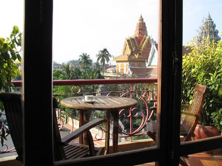 This suite hotel is in a converted riverside building located next to Wat Ounalom with views of the Tonle Sap River. The 21 spacious suites are furnished in local style, using traditional fabrics and rosewood and have large bathrooms and private balconies. The K-West Restaurant and Cafe serves contemporary Asian and European Cuisine.