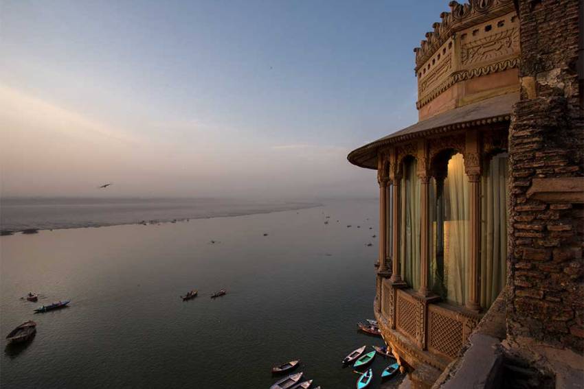 The palace has been meticulously restored and thoughtfully converted into a hotel, offering 32 well-appointed en-suite rooms and suites, each individually designed to blend the old-world charm of Benares with modern comforts. The interiors reflect the rich cultural heritage of Varanasi, with intricate detailing, luxurious textiles and traditional elements, while the addition of contemporary touches ensures the highest level of comfort. Each room is thoughtfully designed with airy corridors that allow natural light to flood the space, creating an open, welcoming environment. Private seating areas are scattered throughout the palace, offering guests the perfect spots to relax and take in the stunning panoramic views of the River Ganges and the distant horizon. These serene settings make it an ideal location for viewing the spectacular sunrises and sunsets that are synonymous with Varanasi’s mystical charm.