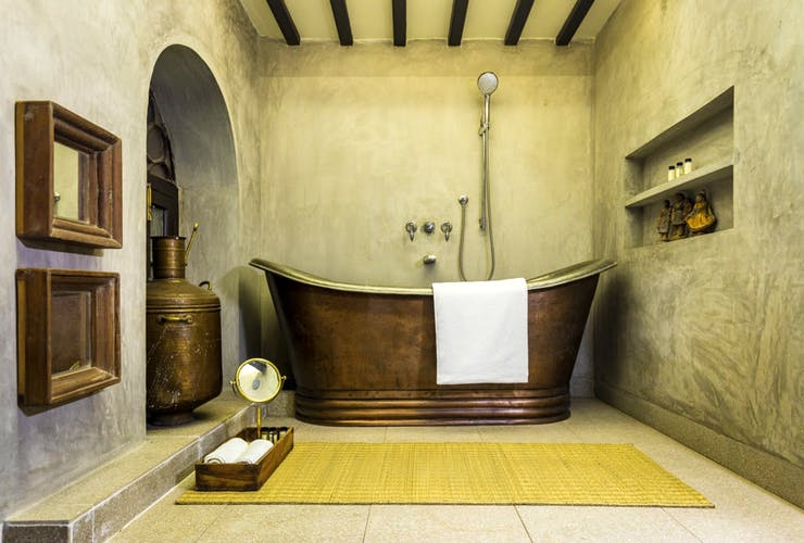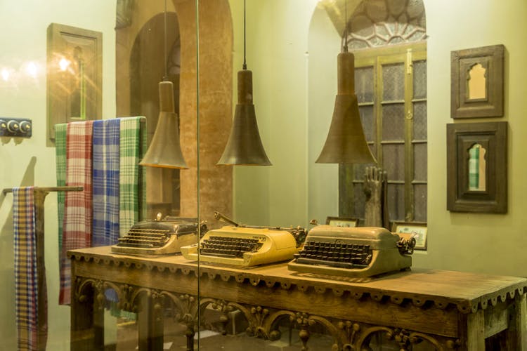 The hotel features six elegantly appointed bedrooms, each designed with a unique sense of place and character. Every room is named after and decorated to evoke a distinct neighbourhood of Calcutta, such as Patuapara and Sahibpara, giving guests an authentic sense of the city’s rich history and cultural diversity. With these rooms, the hotel’s design celebrates the era when Calcutta thrived as an intellectual and cultural hub, and the aesthetic elements capture the atmosphere of a bygone age. Inside each room, guests will find an impressive array of vintage and quirky furnishings, carefully chosen to recreate the ambiance of the city’s imperial past. From antique typewriters and cobblers’ tools to nostalgic old light switches, each element in the room tells a story, adding depth and personality to the space. The journey back in time even extends to the hotel’s transportation, where guests have the opportunity to explore the streets of Calcutta in a charming green Hindustan Ambassador, a beloved symbol of Indian automotive history.