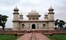Itmad-ud-Daulah's tomb (also known as the Baby Taj), is an exquisite tomb with a lovely garden complex. It is much smaller than the Taj Mahal but has similar attributes: it is largely constructed from white marble with superb marble inlay works and it has four minarets, but unlike the Taj Mahal, the tomb is at the centre of a formal garden, the char-bagh, and has a softly curving roof. Itmad-ud-Daulah migrated from Persia and was a great figure of the Mughal Empire, becoming adviser first to Akbar and then his son, Jehangir. His tomb predates the Taj Mahal by at least a decade.