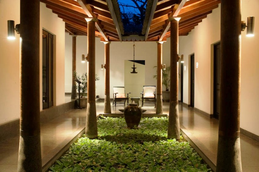 The property itself is a historic 18th-century wallawwa, the Sinhalese word for a traditional manor, reimagined with style and sensitivity. Designed around a central courtyard and pool, the house unfolds in a series of wide verandas, colonnaded walkways and shaded corners. The interiors blend classic colonial architecture with modern design, creating an ambience that is both elegant and laid-back. Outside, two acres of 200-year-old gardens provide a lush backdrop of tropical greenery, filled with frangipani, heliconia and towering trees that filter the Sri Lankan light.
