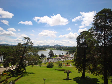 This beautifully maintained grand French colonial lakeside hotel was built in 1922 in the heart of Dalat, and is set on a hill in a private 5-hectare park. It has fantastic views of Xuan Huong Lake and the golf course. Its 38 rooms and 5 suites have high ceilings, working fire places, wooden shutters, polished parquet floors, claw footed bath tubs, chandeliers and traditionally dressed maids in black & white frilly French uniforms.