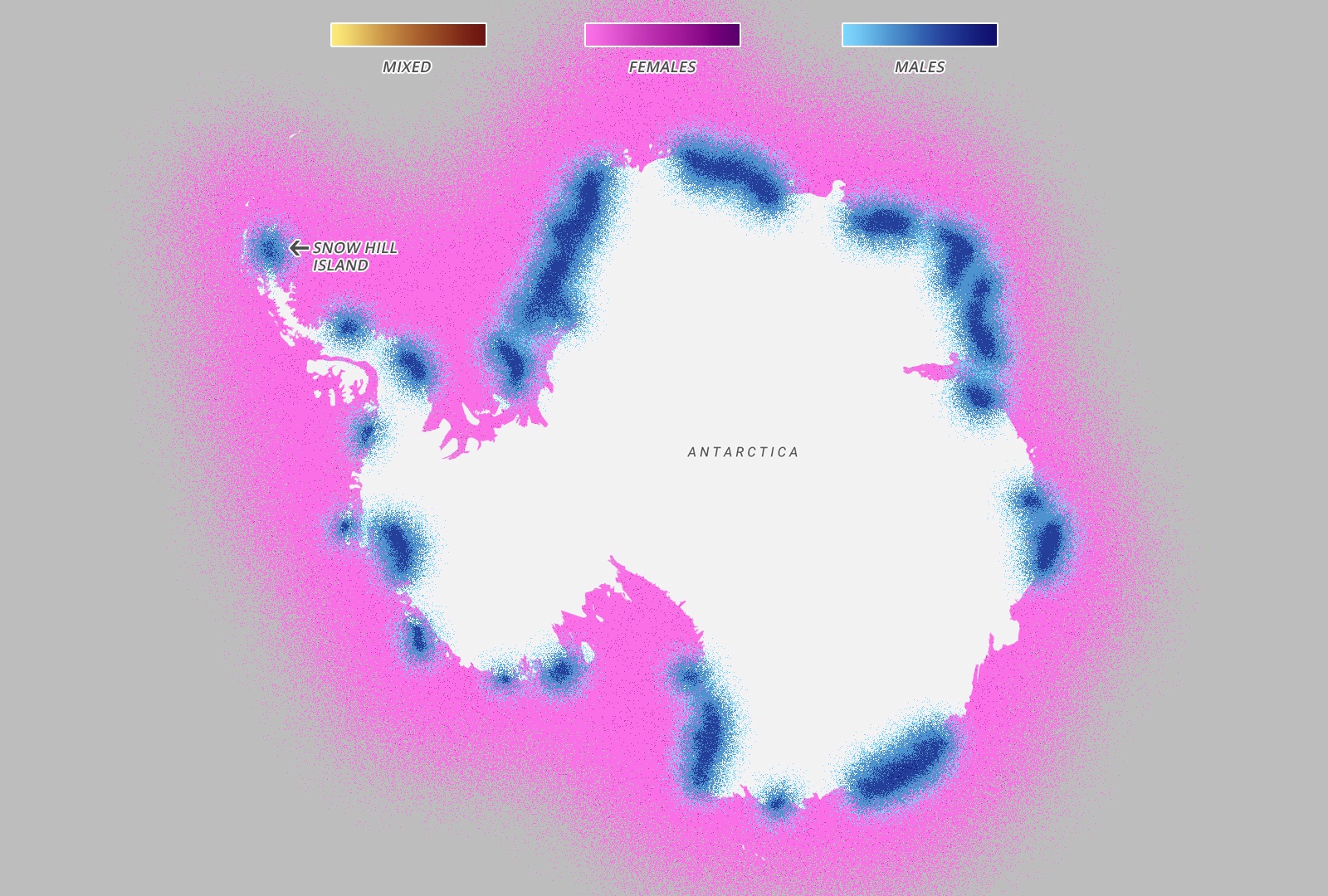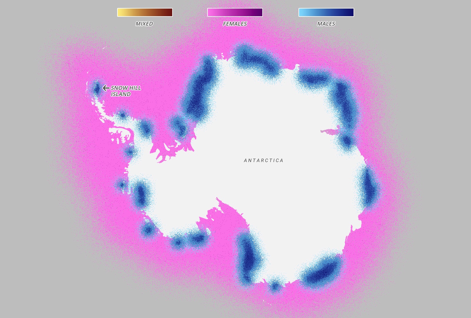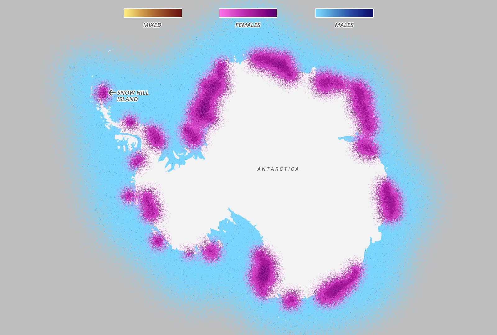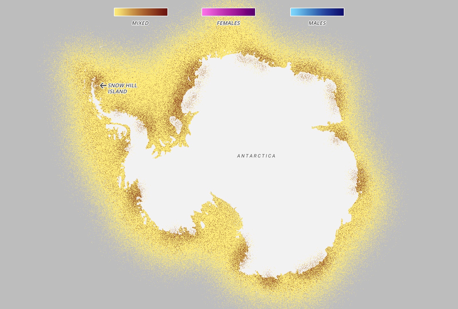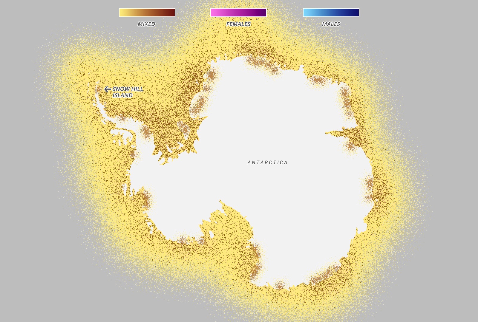 Every year in March, the emperor penguins migrate from the coast of Antarctica to colonies all over Antarctica – notably Snow Hill – 100 miles away across the thick sea ice. The entire colony will travel at the same time throughout the month of March, although every year the exact path changes as the ice shifts and places new obstacles in the way of the penguins. Once they arrive, the females lay an egg and pass it onto their males, who then take care of it for four months while the females are feeding in the sea. When the eggs hatch in August, the females return while the males feed in the sea and over the next few months the parents take turn travelling to the sea and feeding the chick. The chicks will then live by the ocean for the first four years of their lives, before migrating like their parents in their fifth year.