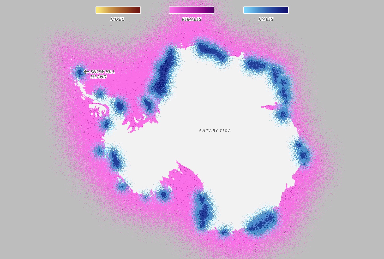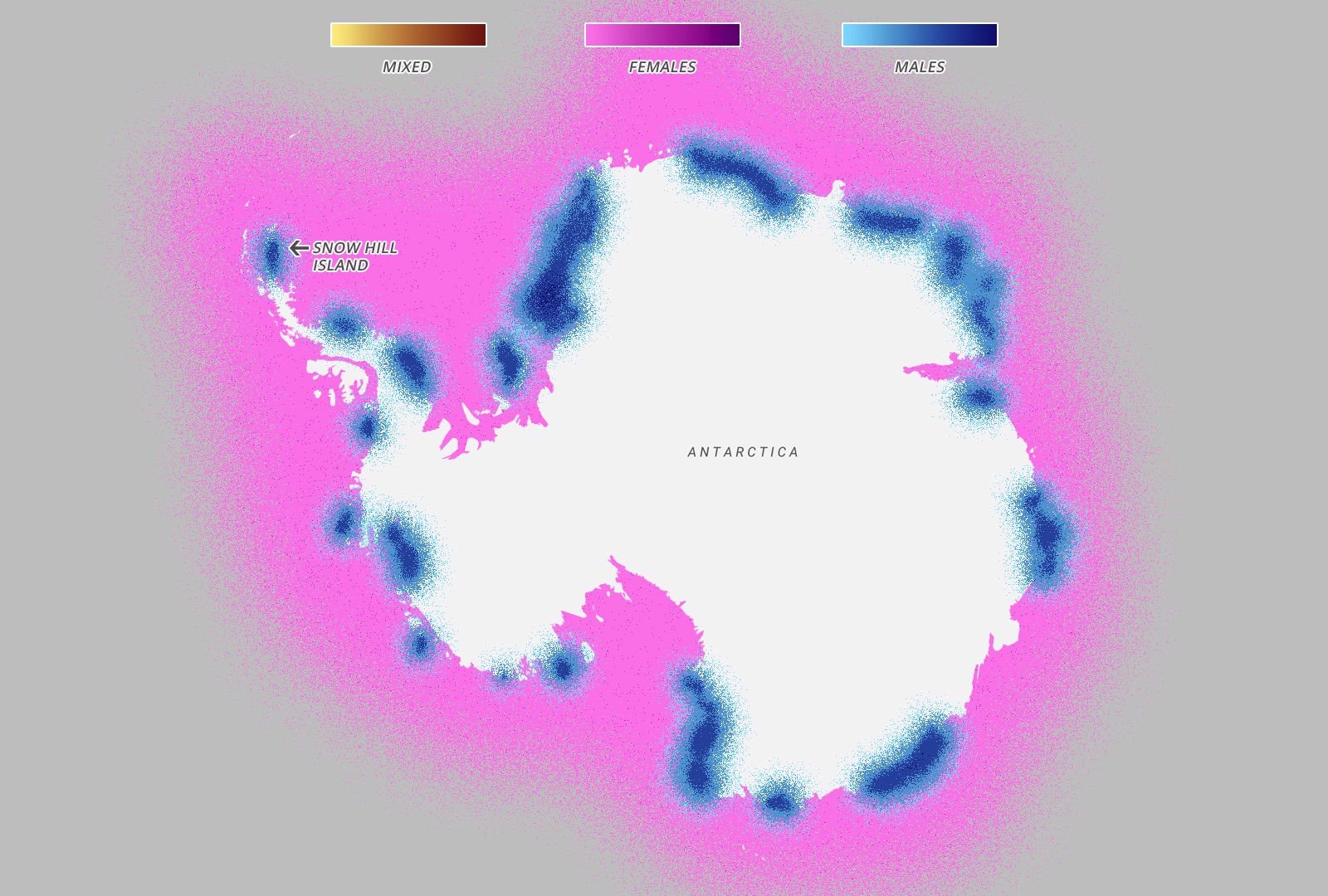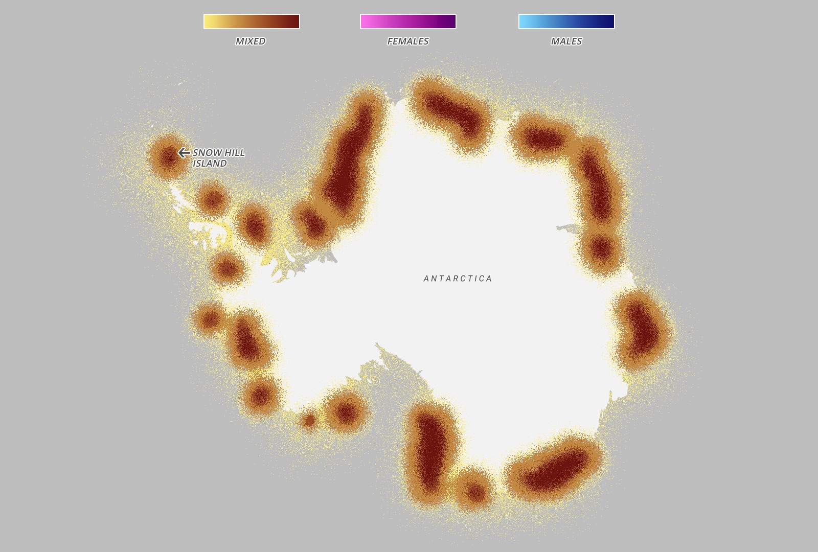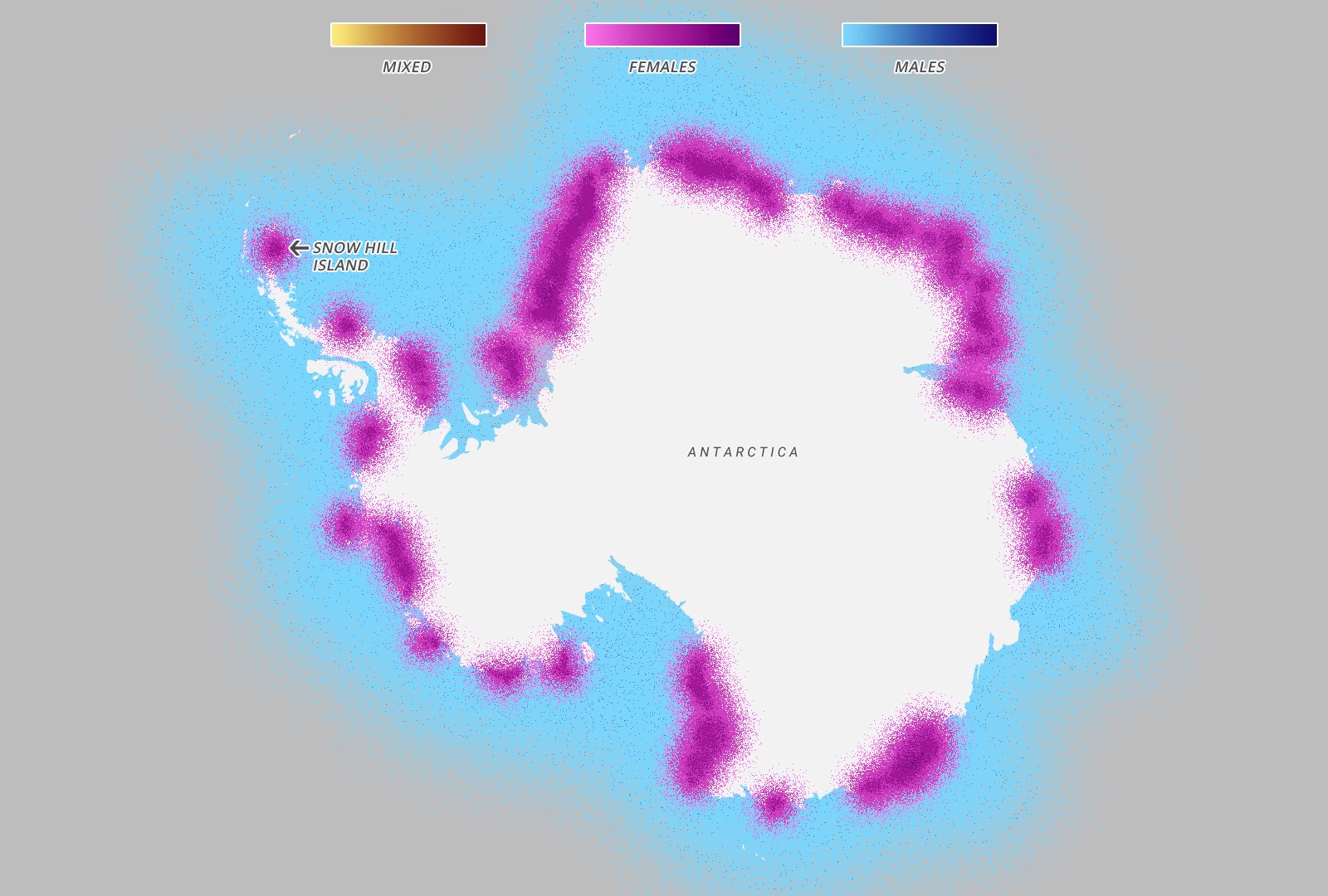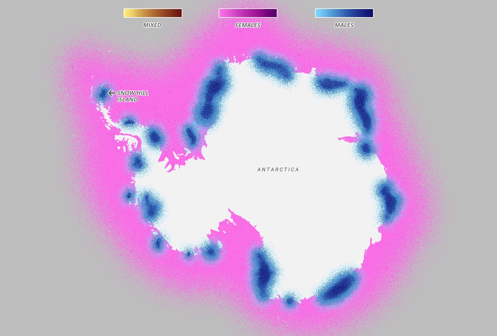 Every year in March, the emperor penguins migrate from the coast of Antarctica to colonies all over Antarctica – notably Snow Hill – 100 miles away across the thick sea ice. The entire colony will travel at the same time throughout the month of March, although every year the exact path changes as the ice shifts and places new obstacles in the way of the penguins. Once they arrive, the females lay an egg and pass it onto their males, who then take care of it for four months while the females are feeding in the sea. When the eggs hatch in August, the females return while the males feed in the sea and over the next few months the parents take turn travelling to the sea and feeding the chick. The chicks will then live by the ocean for the first four years of their lives, before migrating like their parents in their fifth year.