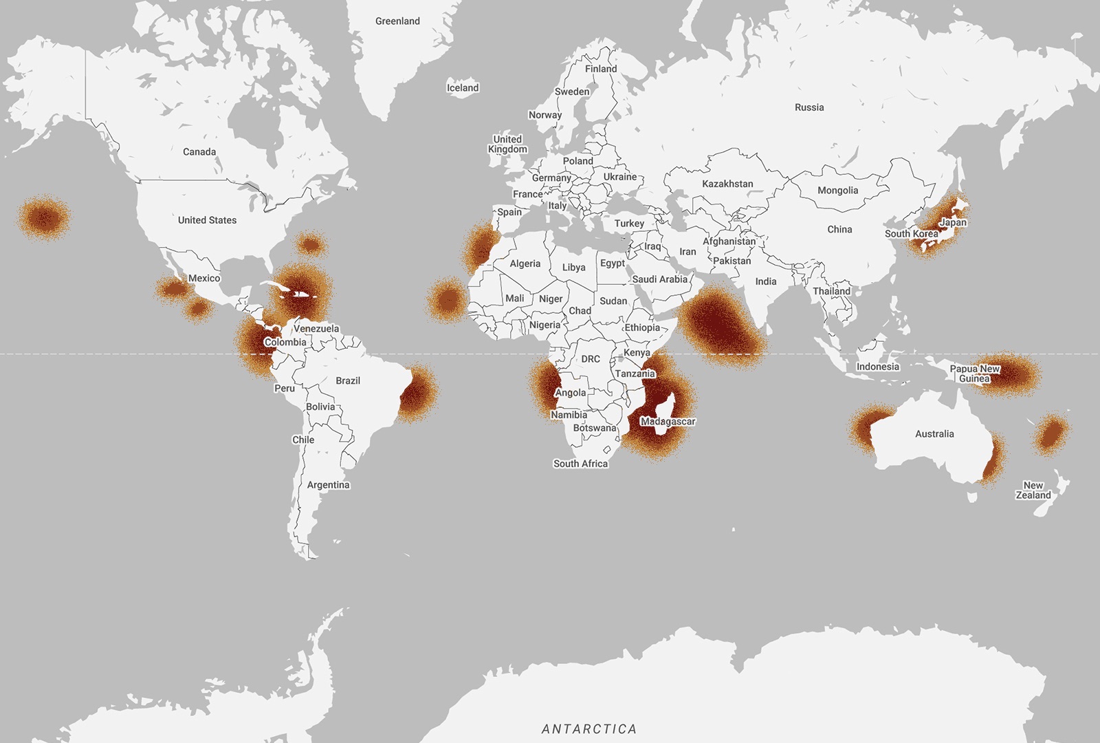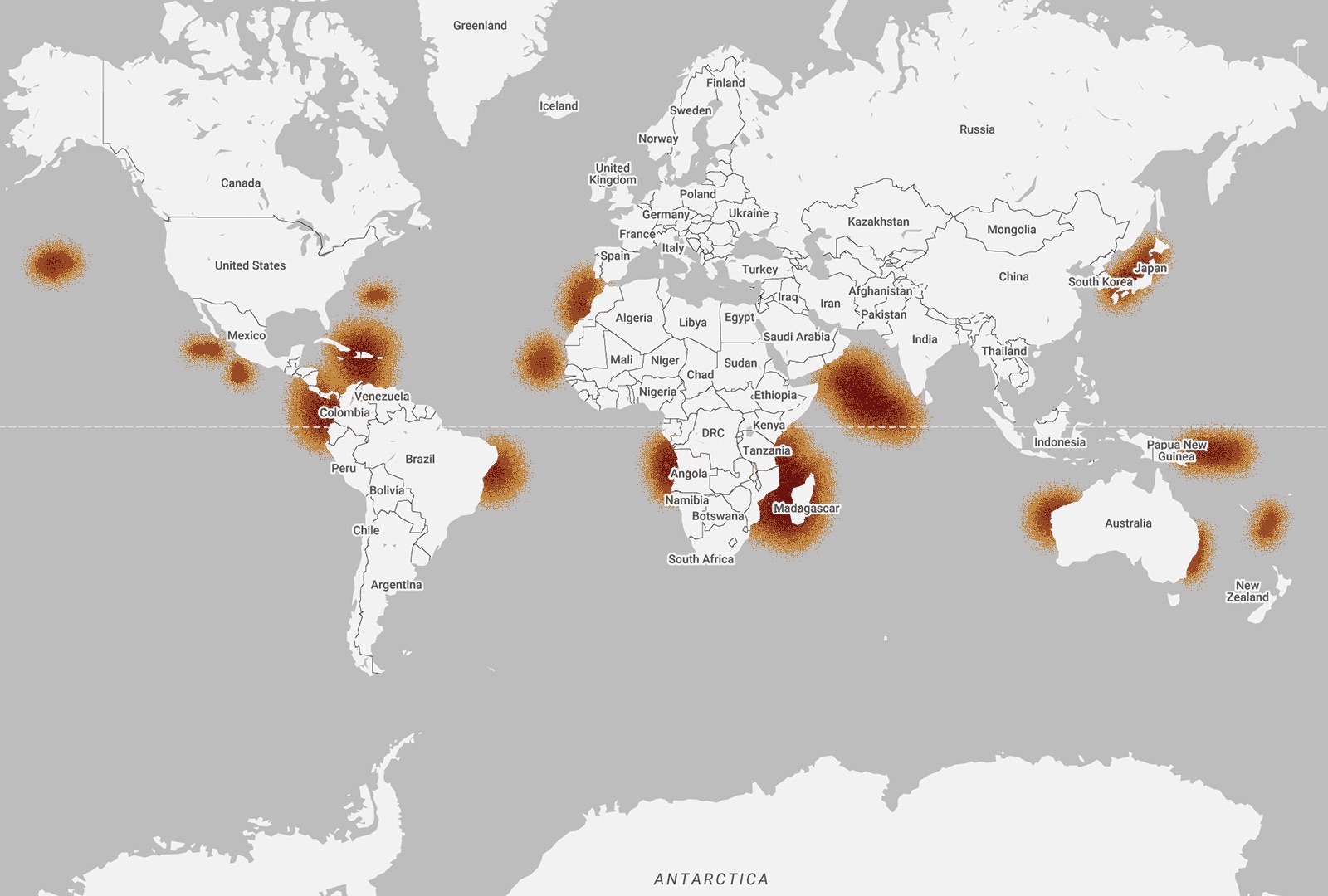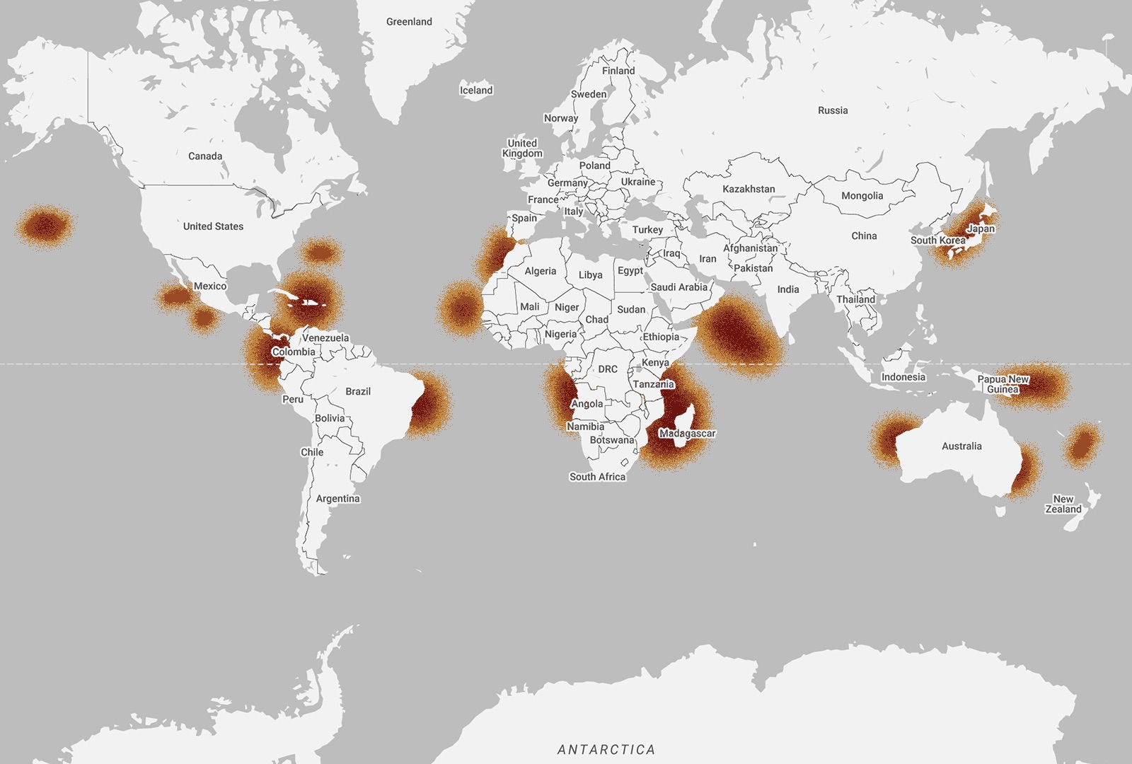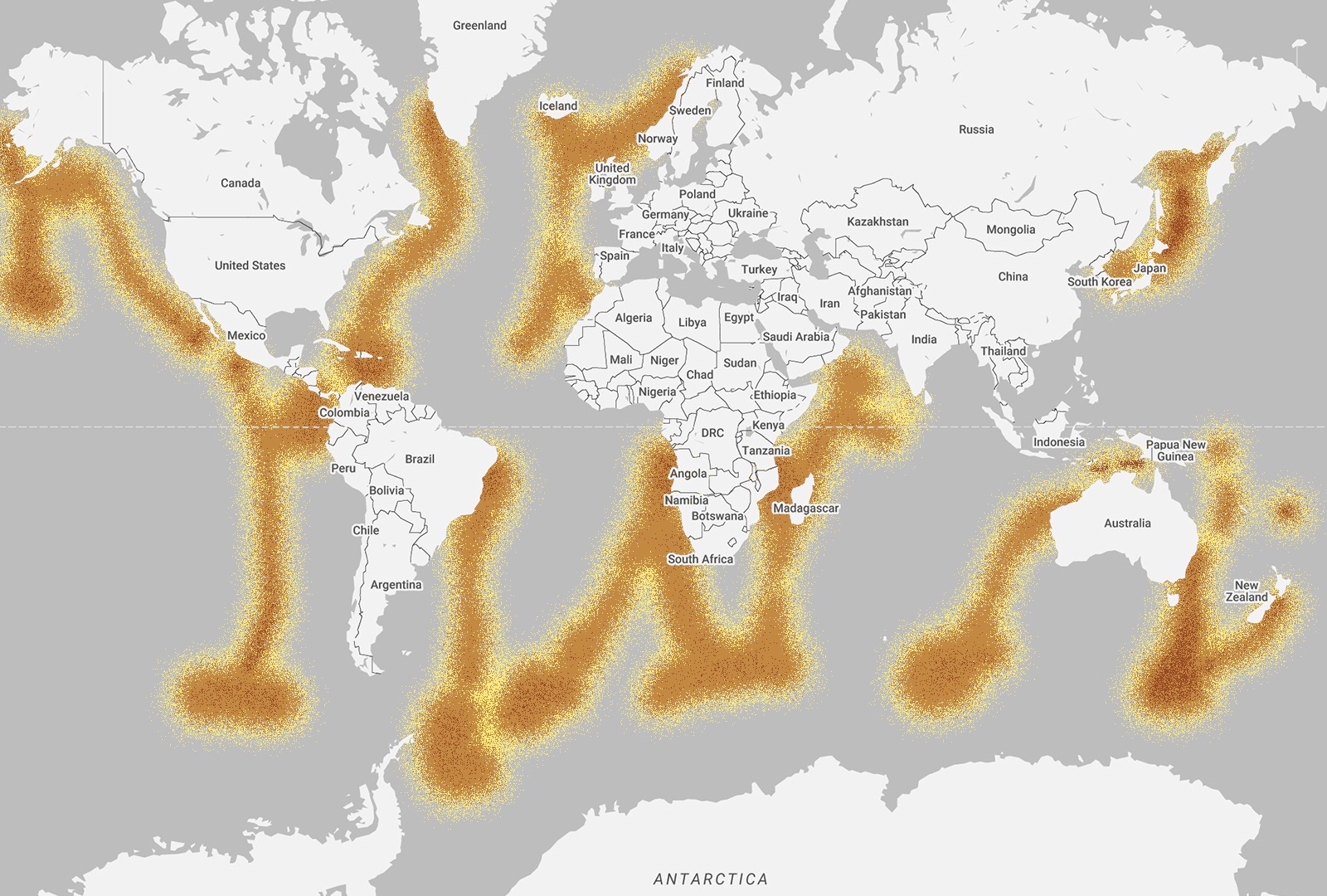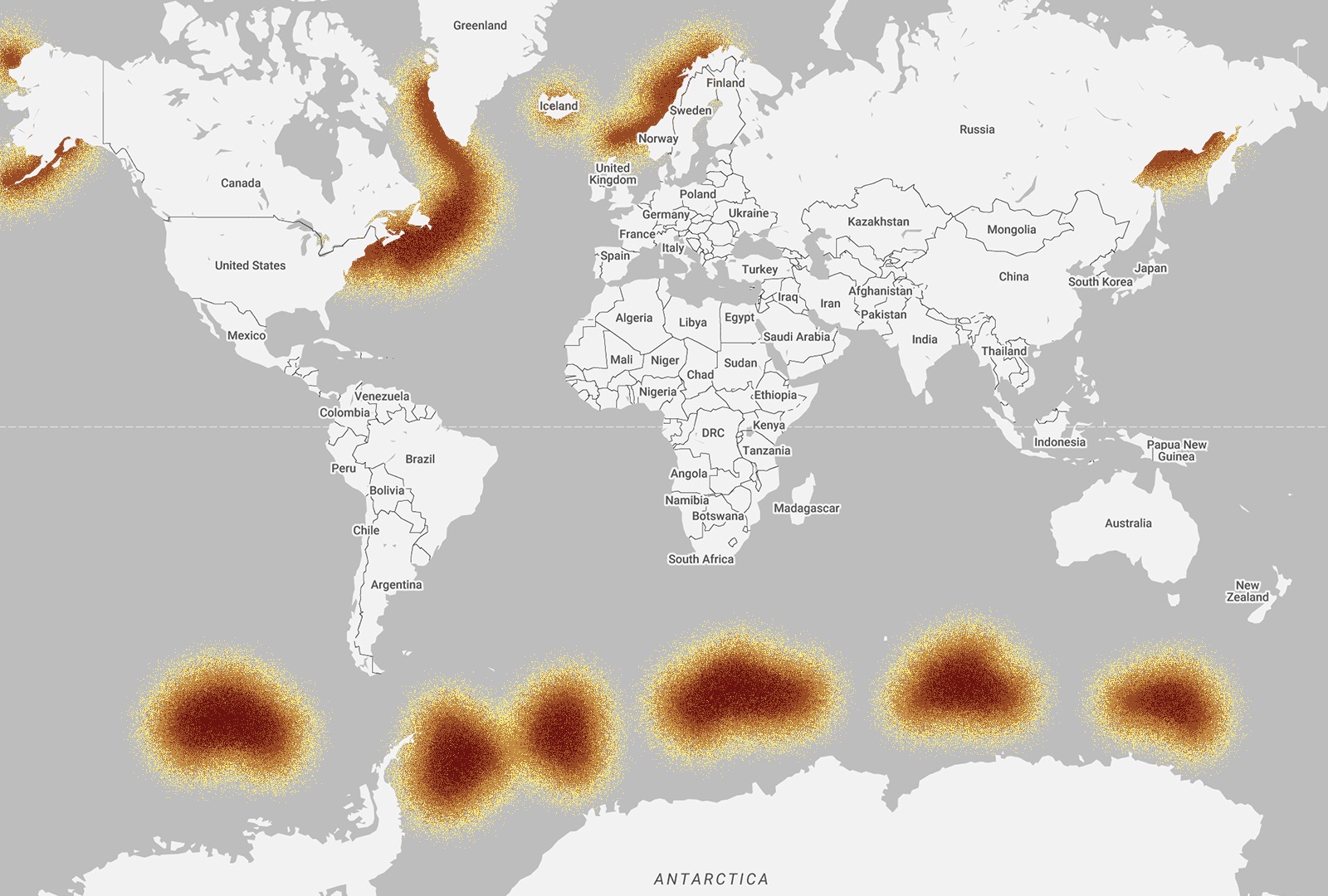 Humpback whales can be found all over the world, which means their migration pattern is wide and diverse. During the summer months, whales from the southern hemisphere spend their time in the south, feeding in the waters around Antarctica. Then during late Autumn, they begin their annual migratory route to their winter breeding and calving grounds in the warmer tropical waters of the Pacific. Whales from the northern hemisphere spend spring through to the fall feeding along the coastal and continental shelf waters that stretch from northern Japan, into the Bering Sea and towards California. During the winter, they head to their breeding grounds in one of the four main regions in the North Pacific: Hawaii, Mexico, Central America and Asia – specifically the islands south of Japan, Taiwan and the Philippines.