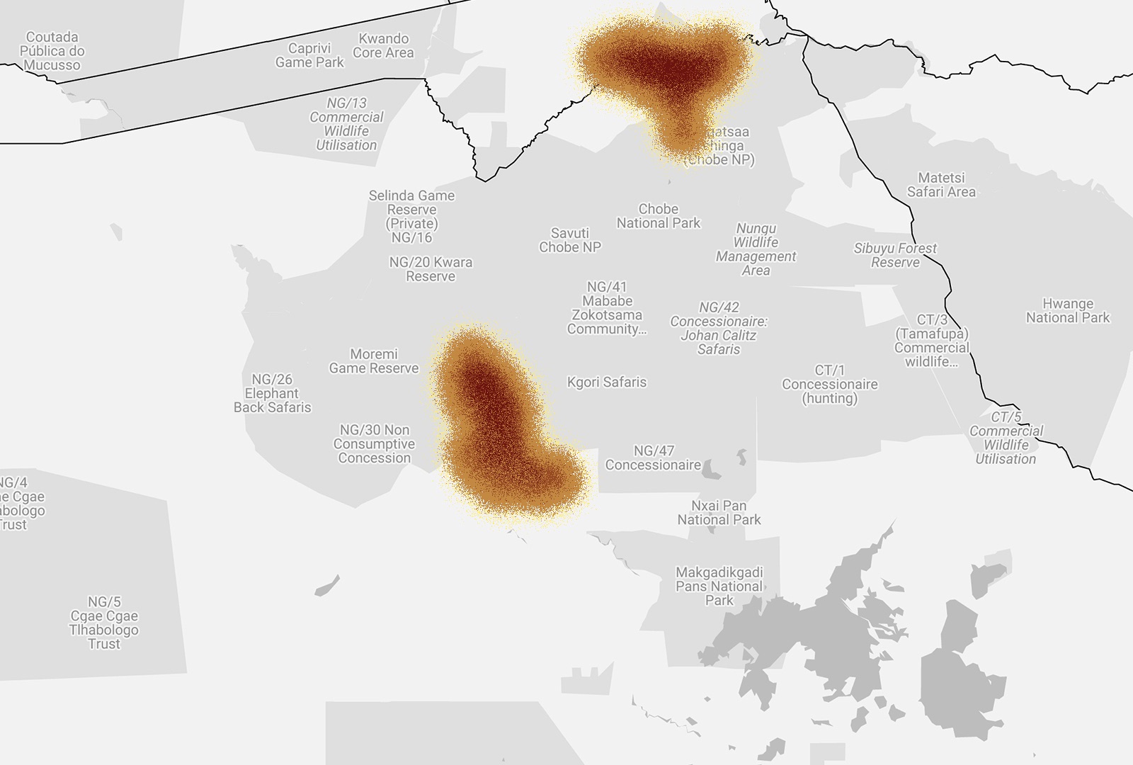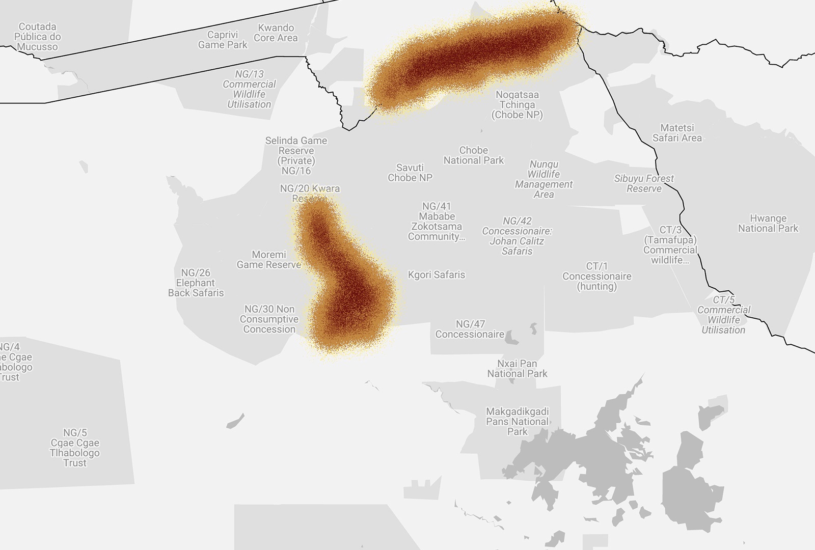 The migration of the Makgadikgadi zebras in Botswana begins at the end of November and early December, beginning with the rainfalls in Makgadikgadi Pan National Park. The migration begins in Okavango, and reaches the Makgadikgadi grasslands in a few weeks, covering approximately 250km. The zebras remain here for roughly two and a half months before returning to the Okavango Delta in March, where they stay during dry season – July, August, September and October. Only 55% of the zebras migrate to Makgadikgadi, while 45% of the population remain in Okavango for the entire year.